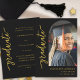 Celebrate your daughter’s graduation in style with this elegant and contemporary black and gold arch photo graduation announcement card. Designed with a modern minimalist aesthetic, it features a chic gold script font paired with a sleek arch photo layout. Perfect for high school, college, or university graduates, this customisable card allows you to highlight your graduate’s special milestone with a clean, sophisticated design. Easily personalise it with a senior portrait and event details to create a heartfelt keepsake or a stylish party invitation. Whether you’re hosting a graduation celebration, sending formal announcements, or sharing senior photos, this versatile card is the ideal choice. Created by artist Catherine Sweetman, it offers a seamless blend of timeless simplicity and modern elegance. The perfect option for 2025 graduation announcements, personalised grad party invites, gold-and-white graduation invitations, and photo cards for girls. This printable graduation template makes celebrating her achievements effortless and memorable.