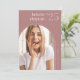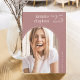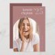 Simple and modern photo graduation announcement features a vertical or portrait orientated photo in a unique arched layout, on a tone on tone dusty rose pink background. The graduate's name and graduation year appear at the top, with the school name at the lower right. Add a personal message to the back, along with an additional photo.