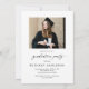 Celebrate a proud milestone with this modern and elegant graduation announcement and party invitation in a timeless black and white design. Featuring a stunning arch-shaped photo on the front, the card showcases the word “graduate” in sophisticated script typography for a stylish and meaningful statement.