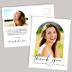 Modern graduation thank you card postcard featuring the graduate's photo in an arch frame, "thank you" in an elegant script and their name and class year in simple typography. On the reverse side, add an additional poto, personalise a thank you message and add add their name in a signature-like script.