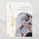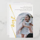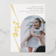 This modern minimalist first birthday invitation features a sleek arch-shaped photo frame and elegant gold foil accents. The clean design allows your little one's photo to take center stage, while the classy vertical script and gold foil add a touch of sophistication. Perfect for parents looking for a chic and stylish way to celebrate their child's special milestone.