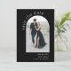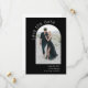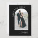 Beautiful simplicity and artistic boho style make this modern arch wedding save the date card pop with appeal. It features an arch shaped photo template on the front of the card to upload your desired photo. There is a text template on the front of the card to personalise with the bride and groom's names and planned wedding date. The back of this card has a sample message with additional details to personalise, along with a QR code template for making it easy for guests to view your wedding website. Shown here with a stylish black background, this card is available in other colours as well.