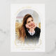 This real gold foil simple minimalist graduation announcement features a photo, arch frame and elegant modern typography.