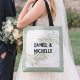 Modern Arched Black Gold Wedding Botanical Theme Tote Bag