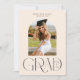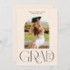 This trendy one-photo graduation announcement features a vertical, arch shaped photo with the word "GRAD" in a elegant modern font (not editable) and the class year placed inside the D (year is editable). This modern flat card design also features editable templates for the graduate's name and school on the front and any additional details you may want to share on the back. Please see my Lisa McLean Design Zazzle shop for other colours and designs that are available. Thank you.