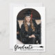 Celebrate your achievement, with these arched modern photo cards. Featuring a white backgound, script which reads 'GRADUATE', your favourite graduation photo's in the shape of an arch, personalised with your school/college name and the class of 20XX. Background colour can be changed by clicking on the customise further link after personalising.