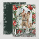 Arched at the top, your favorite photo is outlined in white on a background of red and white poinsettias and features Merry Christmas in chic lettering along with your names on the bottom.