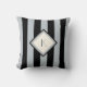 Modern Art Deco Black and Silver Stripes Monogram Cushion