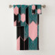 Modern Art Deco Style Pink and Teal Bath Towel Set
