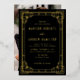 Modern art deco wedding invitations featuring your wedding details framed by a gold foil art deco frame with a black background. The stunning gold foil art deco wedding invitations reverse to display your full-bleed vertical photo. Designed to coordinate with our Modern Art Deco wedding collection.