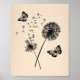 Modern Art Pink Black Dandelion Wishes Butterflies Poster