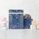 Hand painted in watercolors, snow paint splatter on dark blue background, bringing festive spirit, best for the holiday season gift wrapping