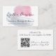 Modern and artistic business card features watercolor pink and blue splash front graphic with customisable text and a custom QR code for your social media or website link. Perfect for artists, interior designers, modern home décor showrooms and more.