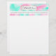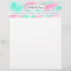 Modern Artsy Neon Pink Teal Abstract Paint Custom Letterhead