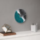 Modern Artsy Teal Blue Black Ocean Beach Waves Round Clock