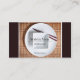 A business card design for an Asian cuisine restaurant. Features simple white dishes with wood chopsticks on a wood place mat. Burgundy coloured background. All text is customisable, and the centred line on the front can be removed if desired.