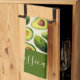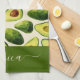 Modern avocado pattern script name kitchen towel. Personalise name.