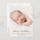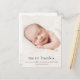 A sweet budget photo birth announcement featuring modern name and full bleed vertical portrait photo. The back has an additional photo spot a large full name header and personal message from the family.
