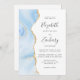 Modern Baby Blue Gold Agate QR Code Wedding Invitation