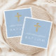 Personalised Modern Baby Blue Religious Cross Boy Baptism Napkins.