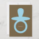 This baby shower invitation for a baby boy has a simple modern design featuring a blue pacifier against a chocolate brown background. Personalise with your own text. You can even change the fonts by clicking the "Customise It" button.