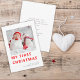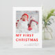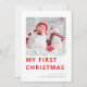 Modern Baby First Christmas Photo. My First Christmas in a modern bold typography in red. Simply replace the sample image with your own favourite of square format and personalise with your greeting and name at the bottom and message on the back.