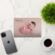 Cute, modern, and simple photo birth announcement featuring a full bleed horizontal landscape photo. On the reverse side is another photo in a frame with additional information you can replace with your custom message.
