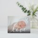 Personalise with your favourite baby photo, featuring a beautiful white script font with the word love. The reverse has a thank you and a welcome message for you to personalise. A lovely keepsake to celebrate your new arrival. Designed by Thisisnotme©