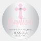 Modern Baby Pink Cross Baptism Girl Thank You Classic Round Sticker