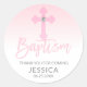 Modern Baby Pink Cross Baptism Girl Thank You Classic Round Sticker