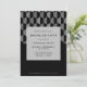 Make a sleek statement with this modern black and silver bachelor party invitation, perfect for a groom who appreciates timeless style and sophisticated design. Featuring a bold geometric pattern and minimalist typography, this invitation sets the tone for an upscale night out or a stylish cocktail celebration. The sharp black background and silver-toned details give it a refined Art Deco vibe, ideal for lounges, rooftop bars, or private events. Fully customisable with party date, location, and RSVP info, this design is perfect for classic bachelor parties with a modern twist.