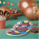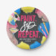 Get your paint and sip bachelorette party started right with art-themed plates which you can use for either food or as a paint palette. Simply customise with the name of the bride and date for a fun personal feel. Design features typography script "paint sip repeat" as well as paint splatters complete with pink, yellow and blue paint splatters as well as hand painted paint palette, glass and paint brushes against a chalkboard background.
