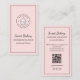 Modern Bakery Logo QR Social Media Icons Pink Business Card