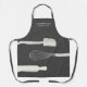 This product design features illustrations of a whisk, pin roller, and spatula. The baking tool design in faux white gold on a dark grey background makes a simple modern and unique baking business apron for bakery and pastry chefs.