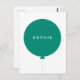 Modern Balloon | Name Green Minimalist Stylish Fun Postcard