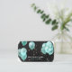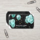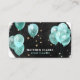 A unique professional business card, which is perfect for event and party planners. This design features a black watercolor background decorated with faux gold stars and elegant turquoise balloons. The reverse of the card has your contact details and social media icons (which are removable by clicking "customise further").