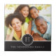 This elegant and modern tile features a picture of a family or couple in the background, a circle with a monogram on the front, and a horizontal banner on the bottom that includes the family name. This tile makes a great gift for to celebrate family, a couple that got engaged or married, or a new home.
