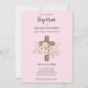 Pretty floral cross themed Baptism, Christening, Bautizo, Bautismo invitation with text template fields both sides so you can add all your required ceremony and reception details along with any religious quotes.