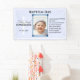 This modern party banner adds a special and personal touch to your baptism day celebration. Replace the sample photo with your own. All text is using popular typography in black text colors on a pastel blue background. Background and text colors can be changed by using the EDIT function.