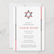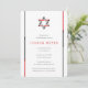 Simple, modern, and cool Bar Mitzvah invitations featuring Star of David design with red, black and grey accents. Personalise online with your Mitzvah details.