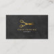 A chic business card featuring elegant gold scissors on a chalkboard background with stylish modern typography. Designed by Thisisnotme©