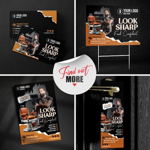 Boost your barbershop's visibility with this striking and modern Business Card template! This professionally designed template is perfect for attracting new clients and promoting your services. The design features a bold, masculine aesthetic with a high-quality image.
