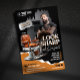 Boost your barbershop's visibility with this striking and modern flyer template! This professionally designed template is perfect for attracting new clients and promoting your services. The design features a bold, masculine aesthetic with a high-quality image.