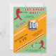 Modern Baseball Ball Player Themed Birthday Invitation. Celebrate in style with this sleek baseball-themed birthday invitation design! Featuring a fun and playful red, green and orange colour scheme, bold lettering, and realistic baseball graphics, this sporty design is perfect for any baseball fan. The card showcases dynamic player silhouettes, a 3D baseball and stripe details. Whether for a kid’s party or an adult baseball lover, this premium and customisable design is a home run for any birthday celebration!