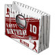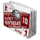 Modern Baseball Ball Player Themed Birthday Large Gift Bag. Celebrate in style with this sleek baseball-themed birthday gift bag design! Featuring a red and white colour scheme, bold lettering, and realistic baseball graphics, this sporty design is perfect for any baseball fan. The bag showcases dynamic player silhouettes, a 3D baseball and stripe details. Whether for a kid’s party or an adult baseball lover, this premium and customisable design is a home run for any birthday celebration!