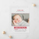Modern Baseball Red Grey Baby Boy Photo Birth Announcement