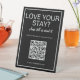 Easily personalise the text and QR code with your information. Font type, size, and colour can all be changed to fit your needs. The background colour can also be customised to match your decor.