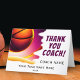 Modern Basketball Ball Thank you Coach Card. Express your gratitude to your basketball coach with this sleek and modern thank-you card. The front features a vivid basketball ball graphic that pops against a clean white background. Inside, you can write a heartfelt message for your coach. This card is the perfect way to show your appreciation for all the hard work and dedication that your coach has put into helping you and your team succeed. Add coach name, team name and year on the front and your thank you message inside the card.