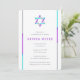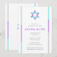 Simple modern Bat Mitzvah invitations featuring Star of David design with purple, teal and silver accents. Personalise online with your Mitzvah details.