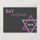 A modern Bat Mitzvah RSVP that features the words Bat Mitzvah at the top and pink Star of David. This matches the Modern Bat Mitzvah invitations in my collection.